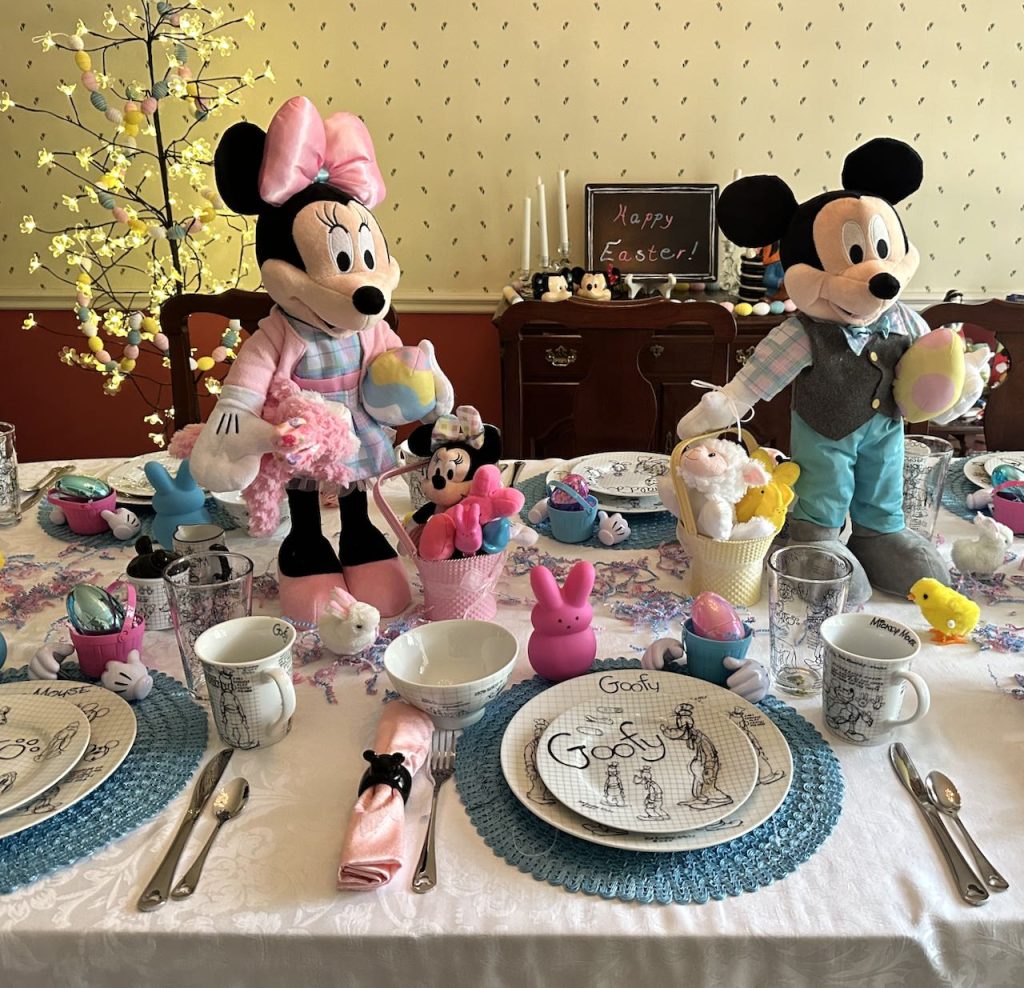 Our Mickey and Minnie Celebrate Easter Tablescape was originally published on 03/21/24. It features Disney Sketchbook plates, Disney napkin rings & centerpieces. It is a part of my Disney Tablescape Series that utilizes the same plates in many tablescapes. To see more pictures, and details about this table, as well as links to many of the other Disney Tablescapes, please click on the Blue Title link above.