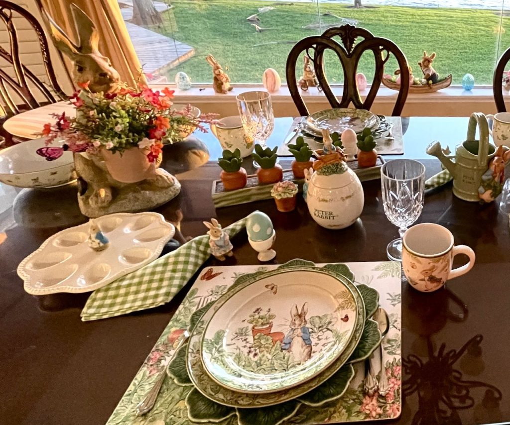 This “Peter Rabbit” Tablescape was originally published on 03/13/2024. It features Peter Rabbit Dinnerware, Centerpieces and Serving Pieces. To see more details and pictures of this Tablescape, as well as other types of Peter Rabbit dinnerware, please click on the “Peter Rabbit” title in Blue type above this section.